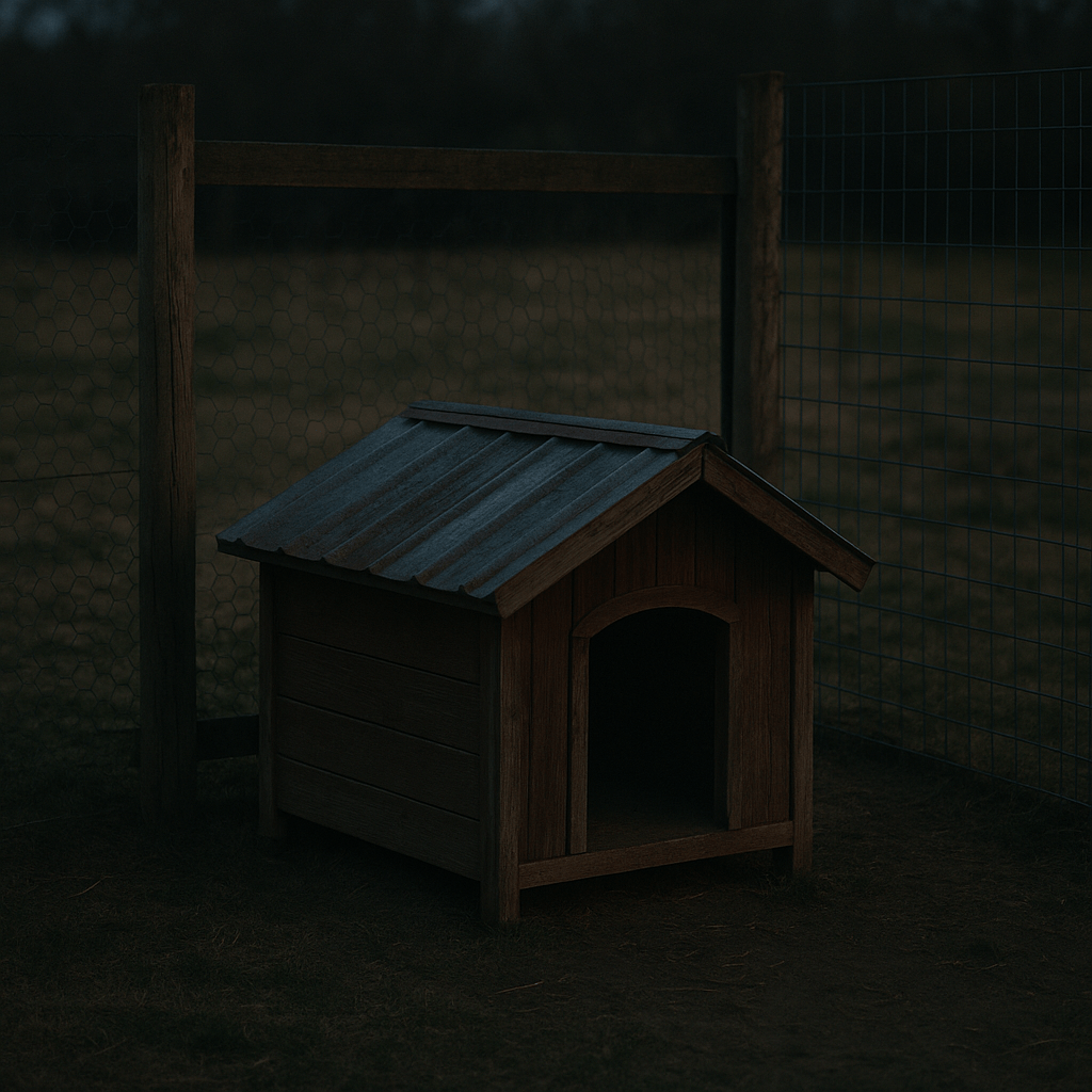 Fast forward a bit. Spring rolls in, Huff’s ready to head back out, and I had everything rigged and ready to go. A lovely space for Huff. Real homespun charm. And just when I think we’re in the clear, here comes Bully. Trailer and all. Rocks up like a backwater warlord and takes the run he called scrap. Just hooks it up and hauls it off like he’s repossessing Excalibur.